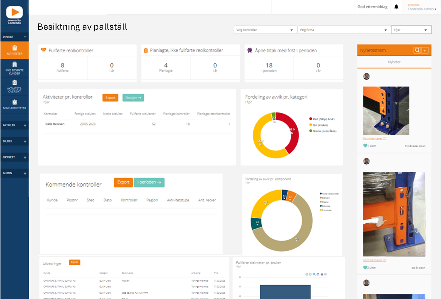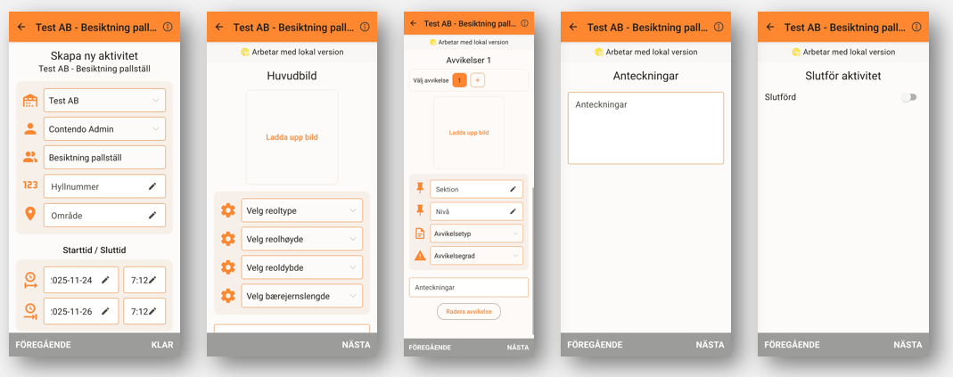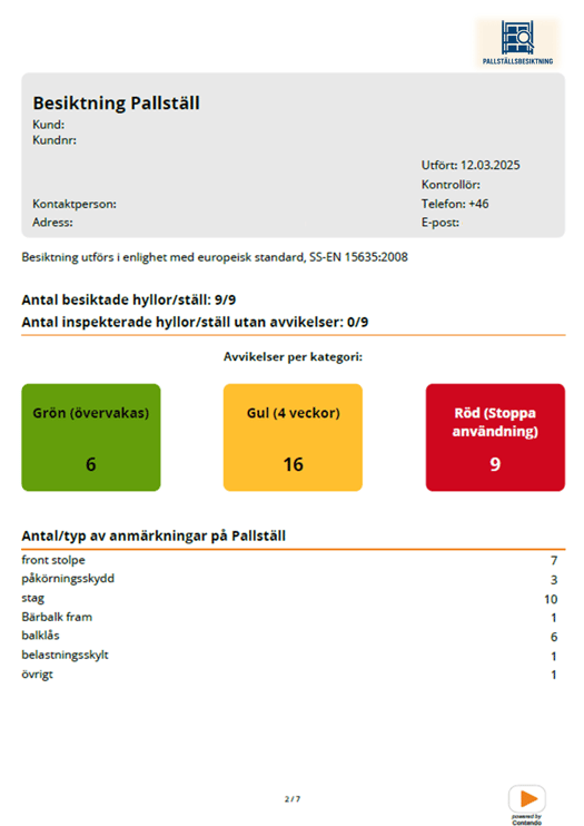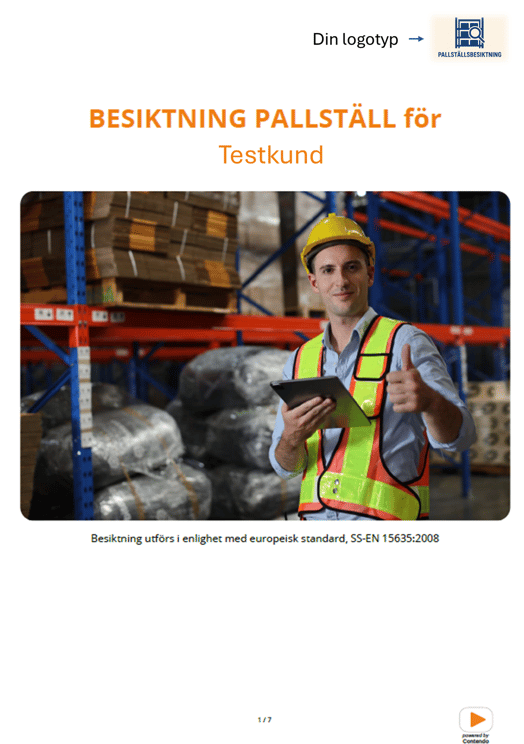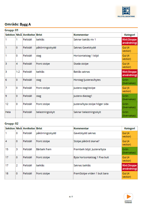 Enkelt att utföra, även offlineBesiktning via app.Kontrollera alla komponenter i lagerinredningen för skador. Alla skador som upptäcks dokumenteras. |
